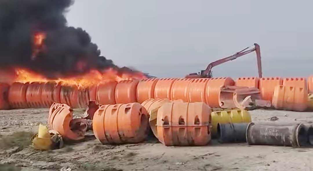 শিবালয়ে বিআইডব্লিউটিএর ড্রেজার পাইপে আগুন