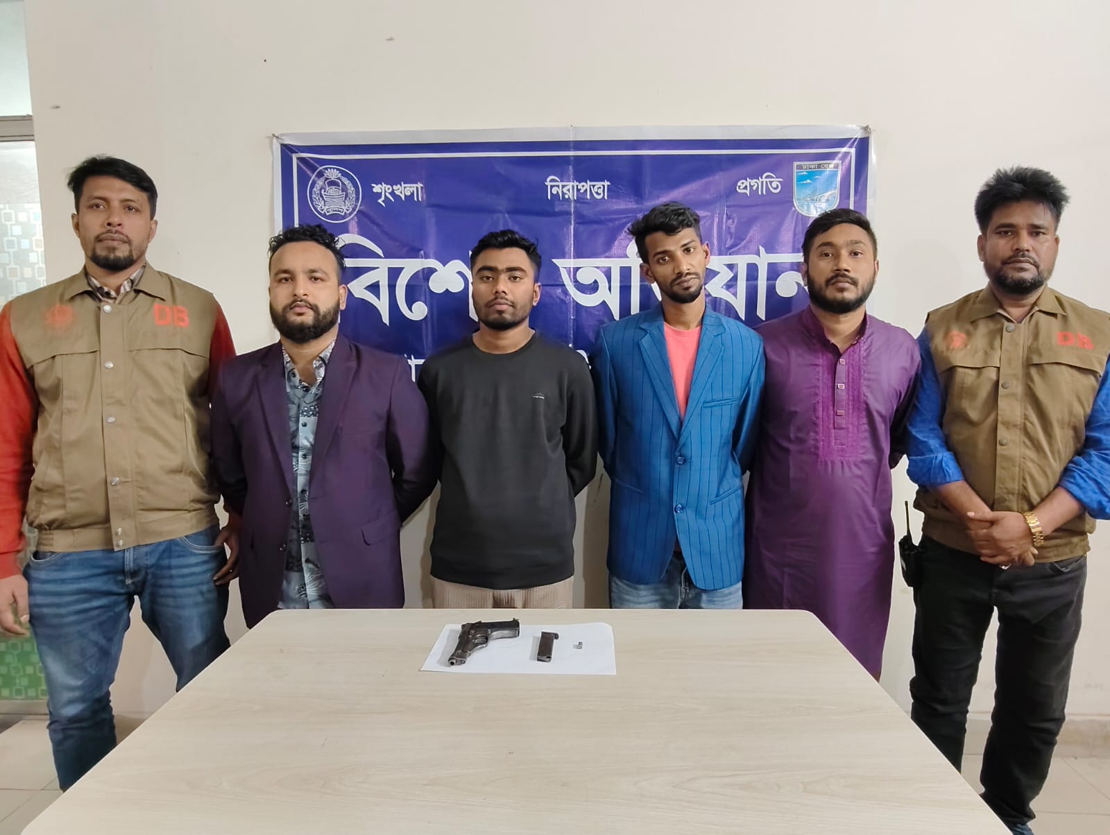 পিস্তল সহ চার জন সন্ত্রাসী গ্রেফতার ।