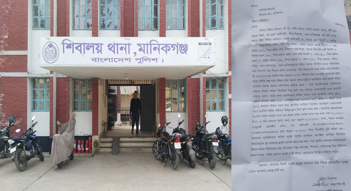 মানিকগঞ্জের শিবালয় উপজেলার ধুসর গ্রামে প্রবাসী নার্গিস আক্তার (৪০) ও পরিবারের সদস্যদের ওপর পারিবারিক বিরোধে প্রাক্তন স্বামী ও মেয়ের জামাইয়ের