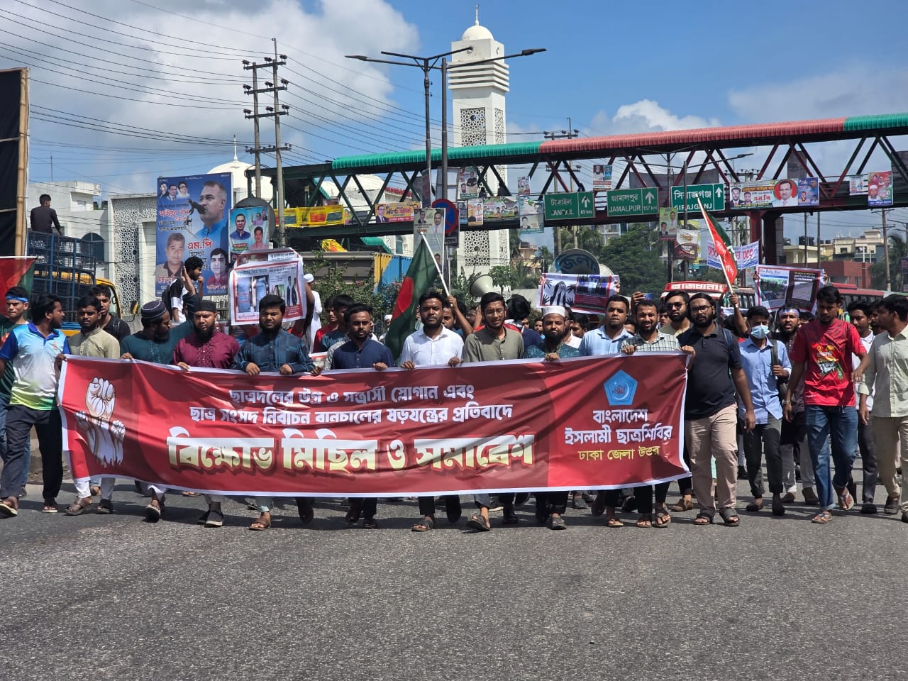 ছাত্রদলের উগ্র ও সন্ত্রাসী স্লোগানের প্রতিবাদে সাভারে ছাত্রশিবিরের বিক্ষোভ