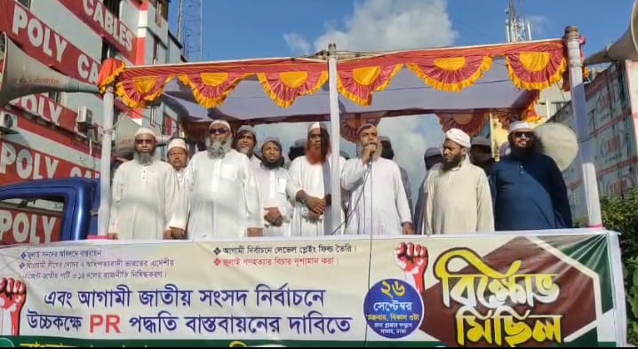 পাঁচ দফা দাবিতে সাভারে খেলাফত মজলিসের বিক্ষোভ।
