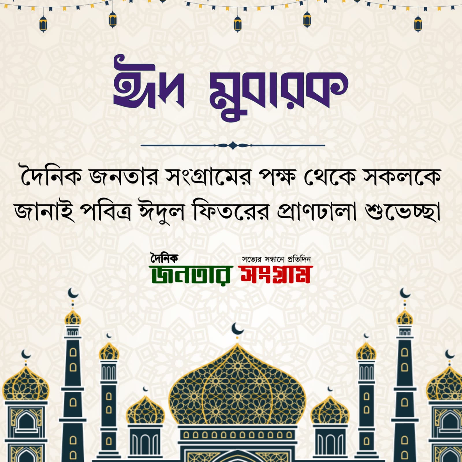 দৈনিক জনতার সংগ্রামের পক্ষ থেকে দেশ-বিদেশে অবস্থানরত সকল পাঠক, শুভানুধ্যায়ী ও সম্মানিত নাগরিকদের জানাই পবিত্র ঈদুল ফিতরের আন্তরিক শুভেচ্ছা ও ReadMore..