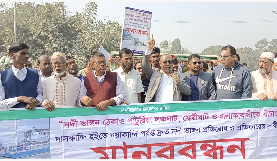 মানিকগঞ্জে নদী ভাঙন রোধে এলাকাবাসীর বিক্ষোভ-মানববন্ধন