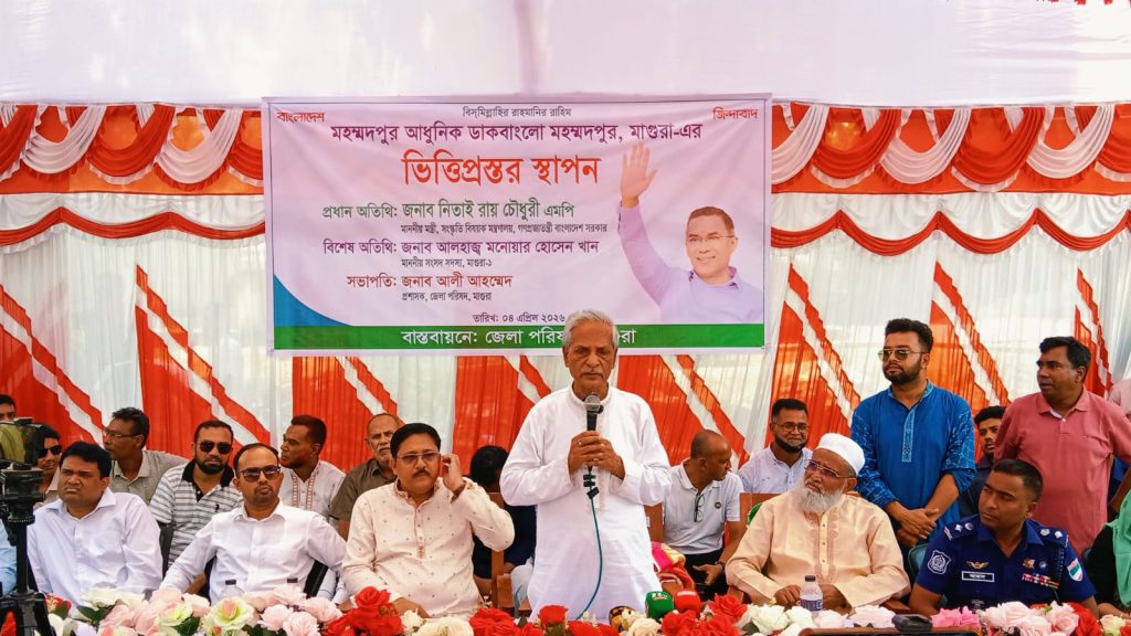 মাগুরার মহম্মদপুর উপজেলায় আধুনিক ডাকবাংলোর ভিত্তিপ্রস্তর স্থাপন করা হয়েছে। আজ ৪ এপ্রিল শনিবার বেলা-১২ টায় মাগুরার মহম্মদপুরে সংস্কৃতি বিষয়ক মন্ত্রণালয়ের মন্ত্রী এ্যাড. নিতাই রায় চৌধুরী এমপি এ ভিত্তিপ্রস্তর স্থাপন করেন।