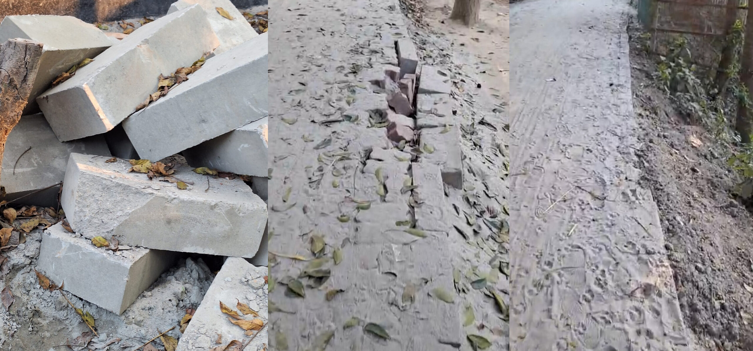 মানিকগঞ্জে নিম্নমানের ইউনি ব্লক, কার্ভিস্টোন ও বালু দিয়ে রাস্তা নির্মাণের অভিযোগ