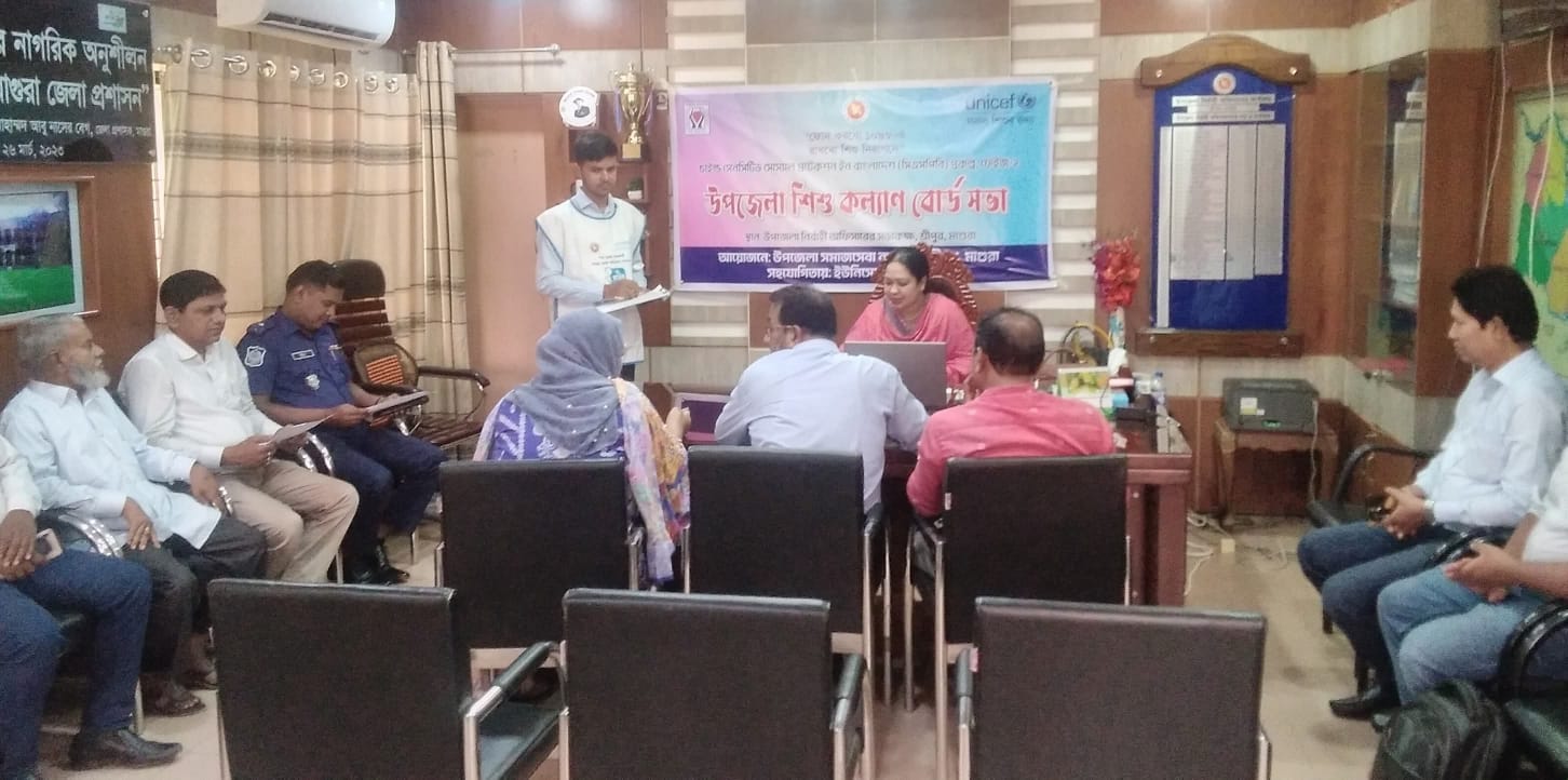 স্টাফরিপোর্টার মাগুরাঃ মাগুরার শ্রীপুর উপজেলা নির্বাহী কর্মকর্তার কার্যালয়ে বুধবার দুপুরে উপজেলা শিশু কল্যাণ বোর্ডের সভা অনুষ্ঠিত হয়েছে।সভায় সভাপতিত্ব করেন উপজেলা